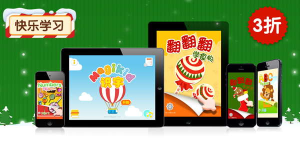 本次优惠产品包括了入选苹果App Store教育类“新品推荐”、支持iPhone 5的出色App、儿童游戏第一、教育游戏第一,以及“年度最佳“的精品应用 。持续一个礼拜的圣诞惊喜,你准备好了吗?