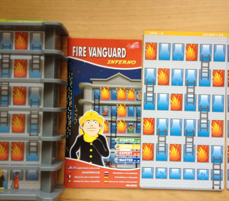 孩子4岁多时,我从淘宝找到的一个玩具。玩具的玩法:孩子扮演消防员,要通过不同路径进入事故现场去拯救被围困的人。每个消防救急都是一个场景,这些场景通过卡片表达。把卡片插入到楼房模型,就是一个消防救助的具体场景。从简单到复杂,有很多卡片,很多关。对于训练孩子的观察和思维能力很有好处。