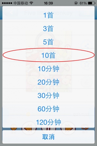 不仅有再放几首的设置,还可以设置再播放多长时间,如下图
