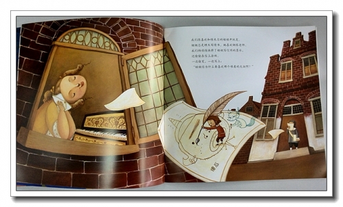 《飞行的狐狸》说的是荷兰天才艺术家维米尔的故事,维米尔的父亲曾经经营一家名为“飞行的狐狸”的旅馆和画廊。本书将维米尔生活的这个旅馆拟化成一只狐狸,去看看维米尔的成长历程。