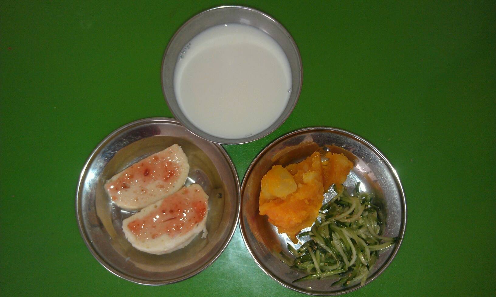 周四早:牛奶,桃酥,蒸胡萝卜,鹌鹑蛋
